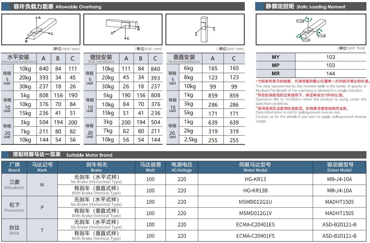 螺杆导程:5/10/20mm