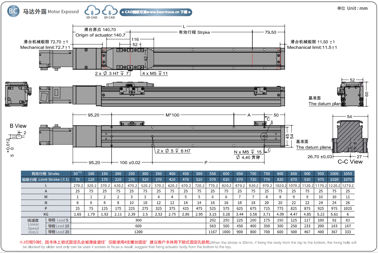 标准行程:50~1050mm