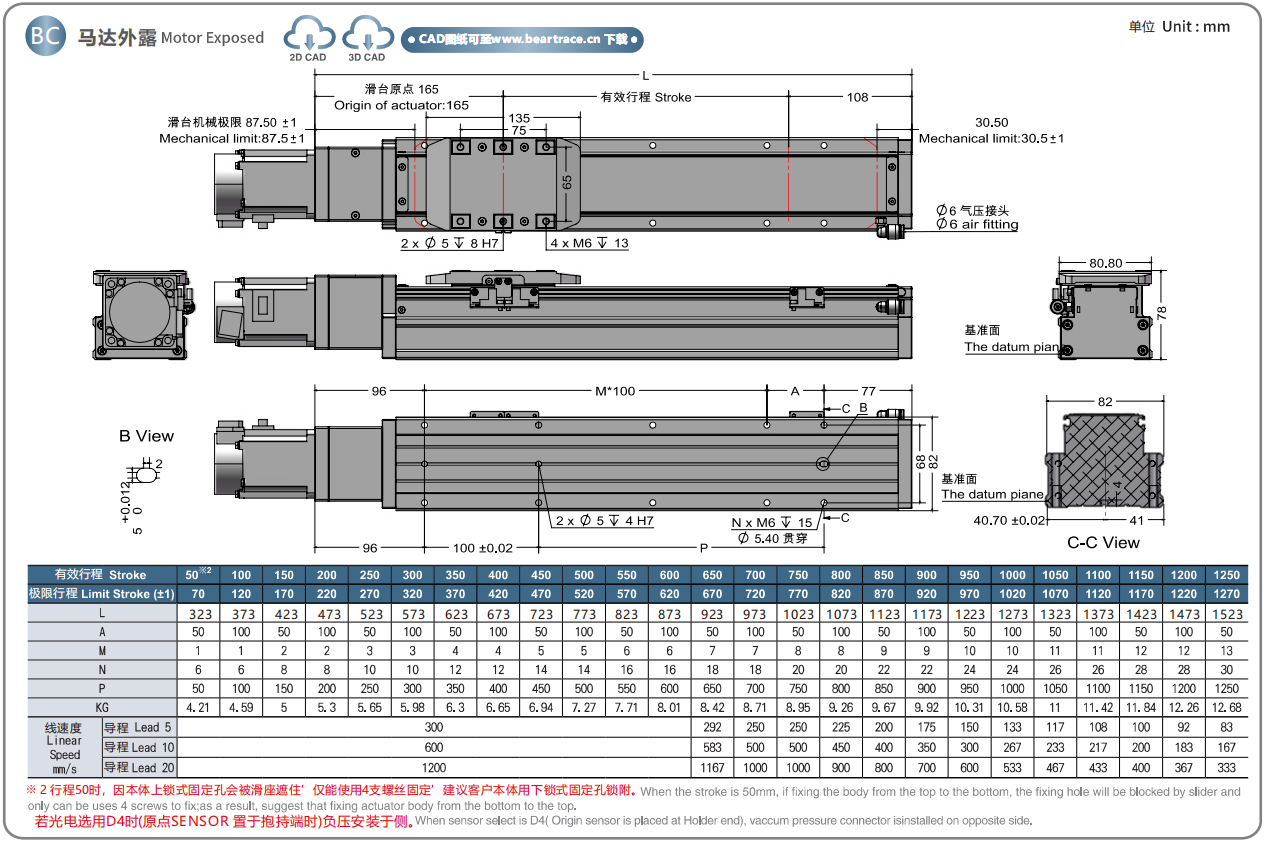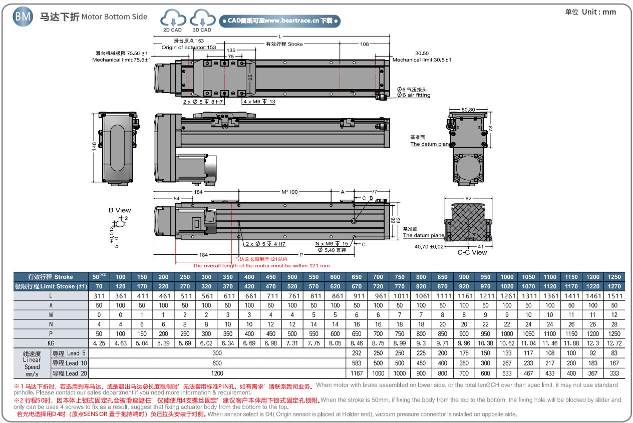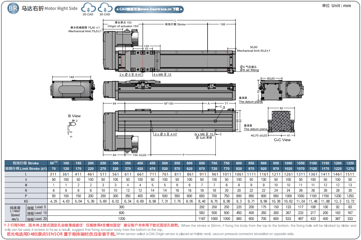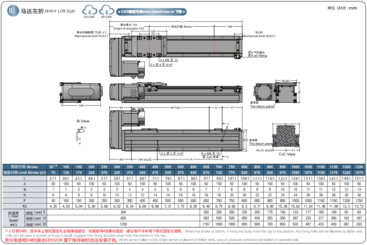 标准行程:50~1250mm