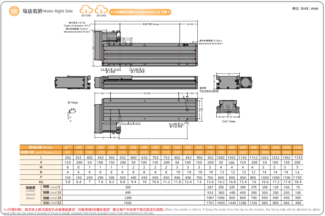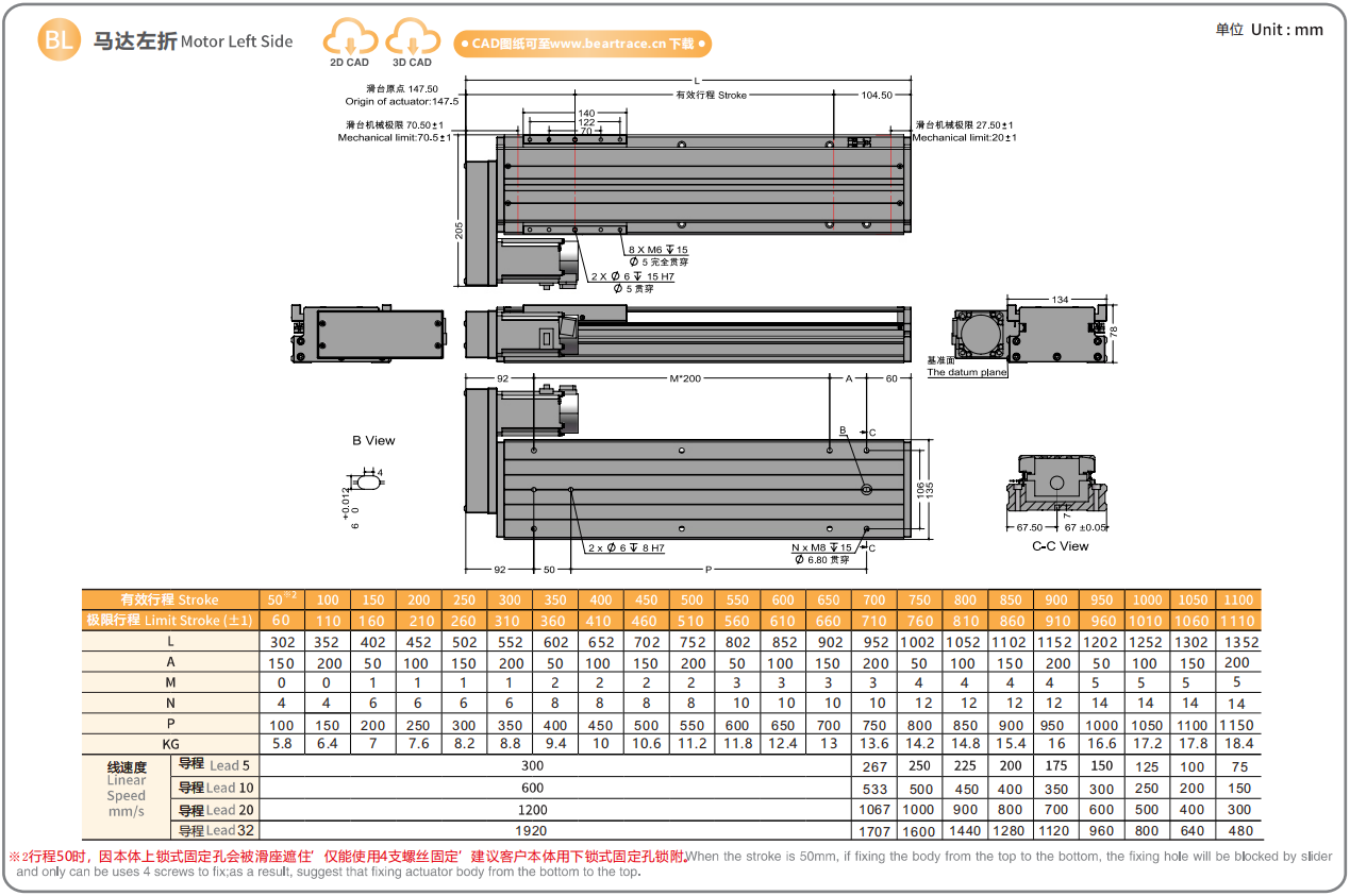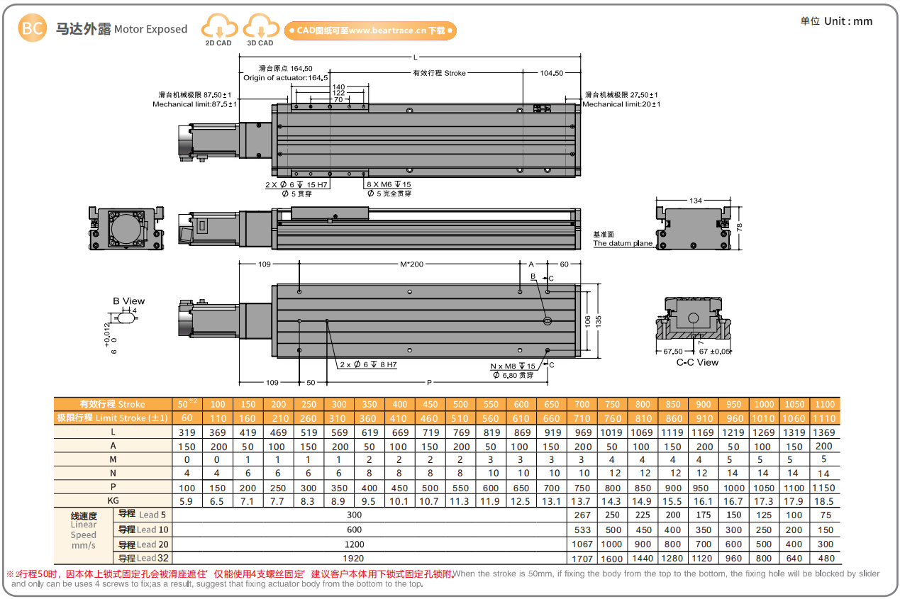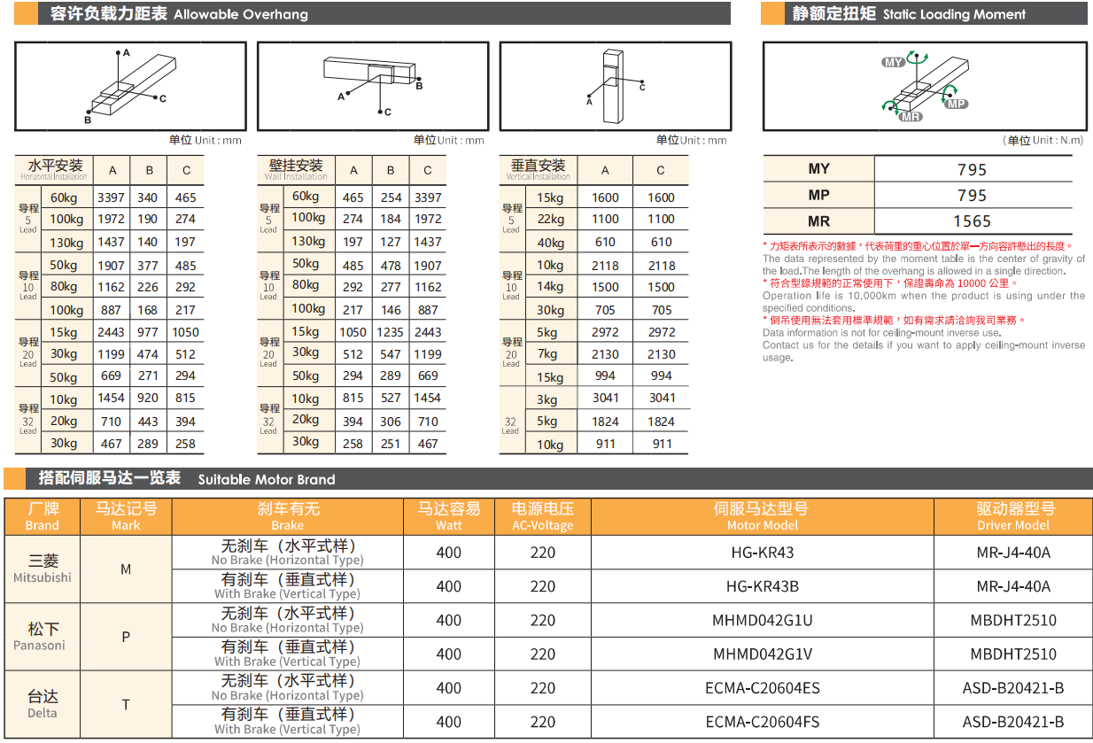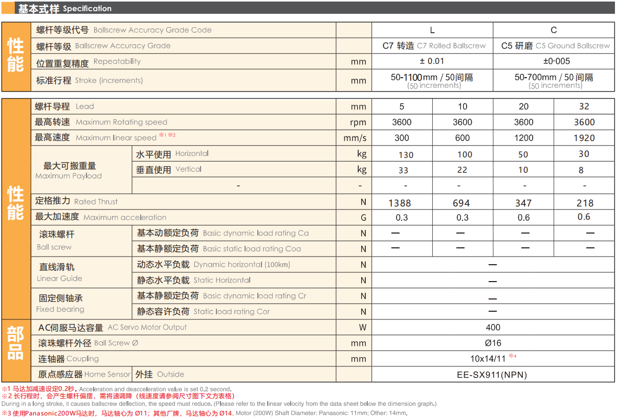 螺杆导程:5/10/20/32mm