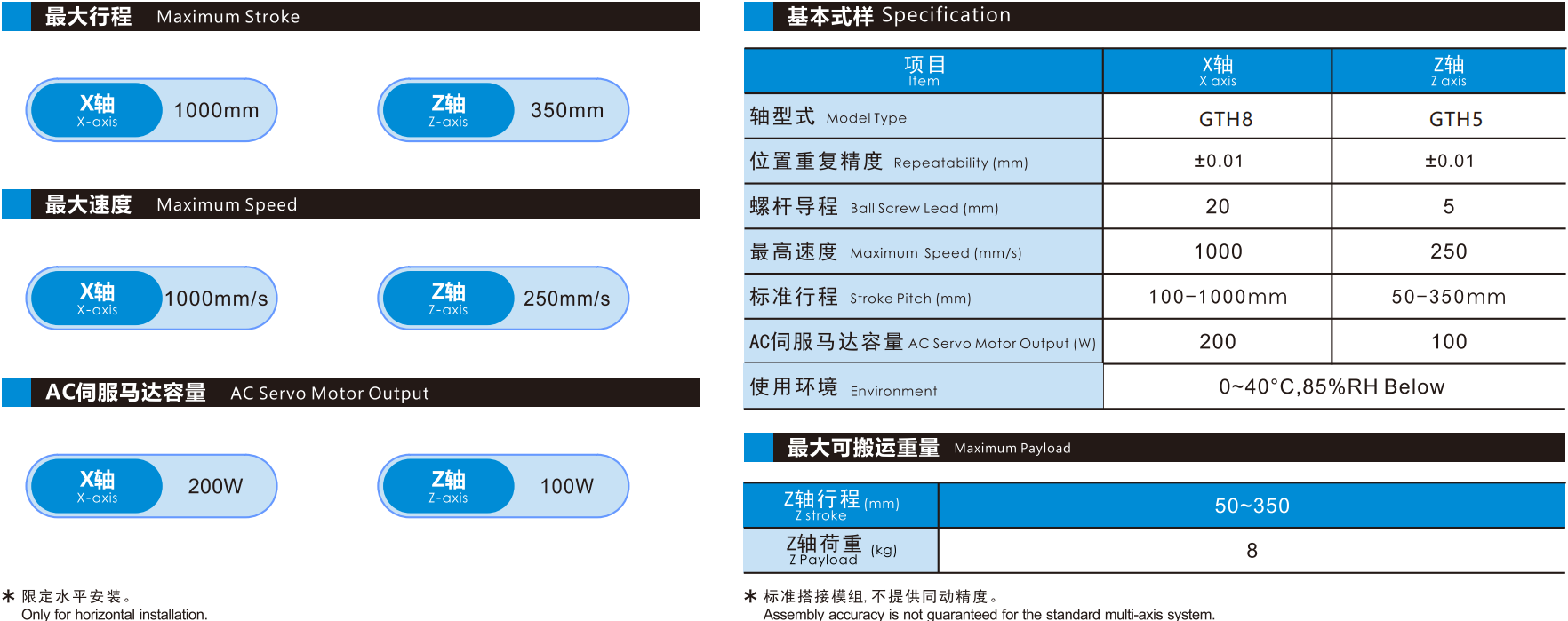 产品特色:最大行程:X轴1000mm Z轴350mm