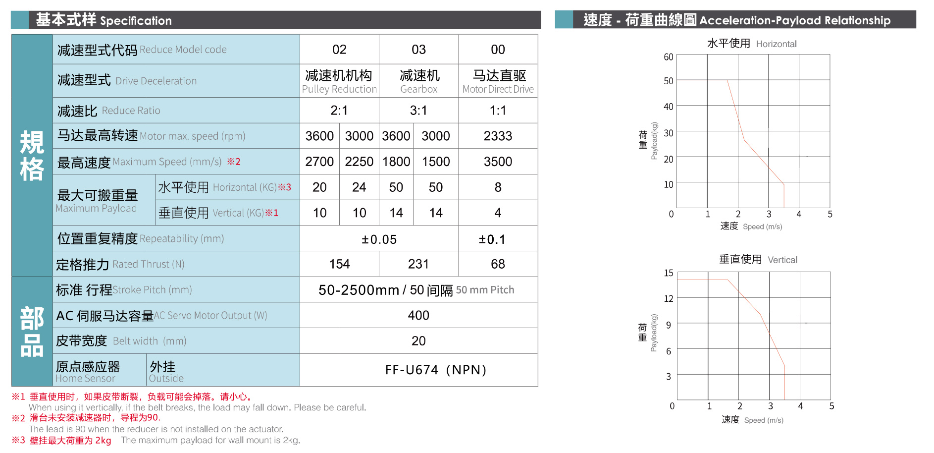 规格特性:AC伺服马达容量:400