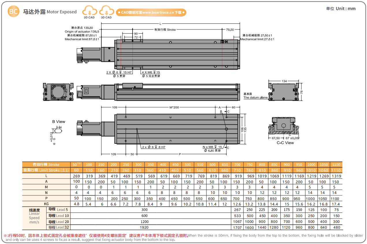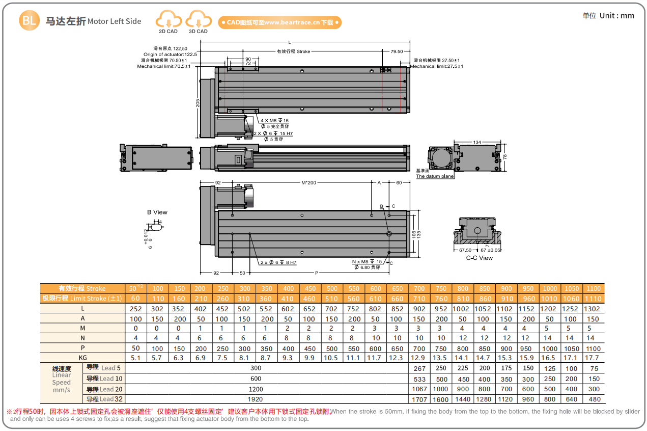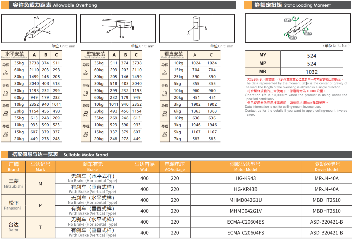 螺杆导程:5/10/20/32mm